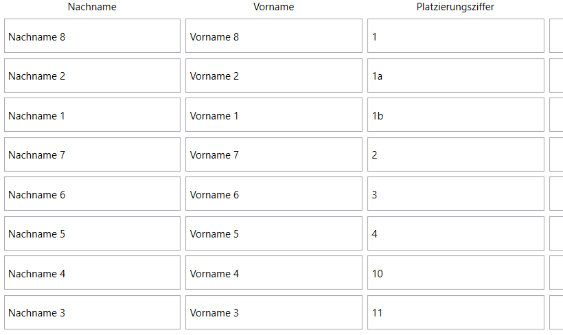 Sollte es einmal nötig sein, Spieler „dazwischen zu schieben“, können z.B. Platzierungsziffern wie „5a“, „5b“ usw. verwendet werden.