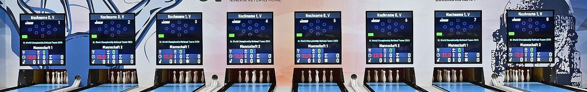 Im Einsatz mit dem Control Center, können die Bahnbildschirme detailreiche Informationen für jeden Kegler anzeigen. Auch Heim- und Gastanzeige sowie Spielerlisten können über die Bahnbildschirme angezeigt werden.